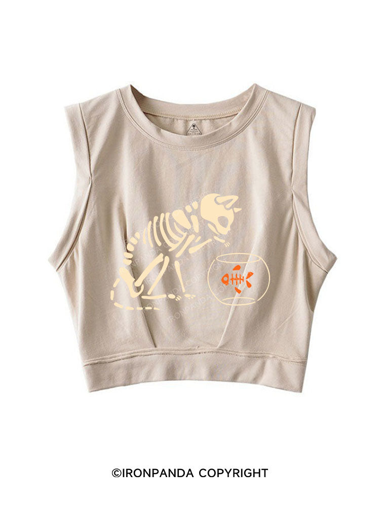 CAT AND FISH SKELETON SLEEVELESS CROP TOPS