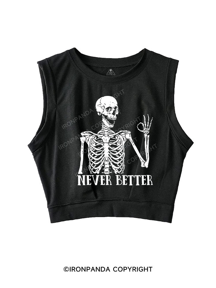 NEVER BETTER SKELETON SLEEVELESS CROP TOPS