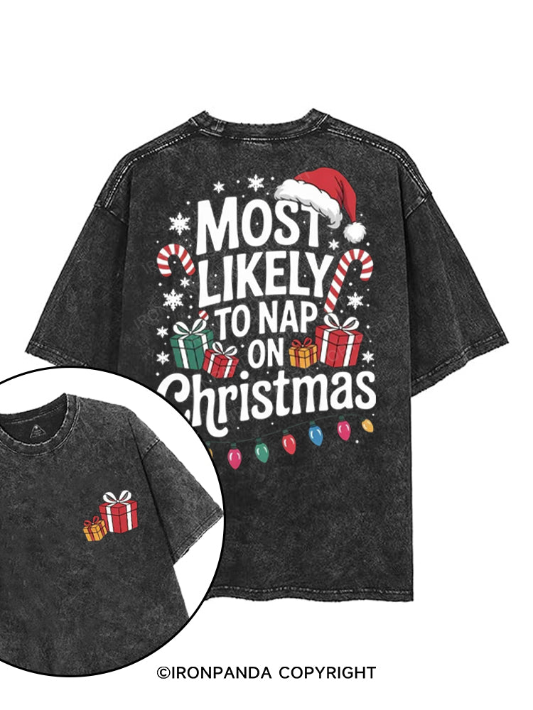 MOST LIKELY TO NAP ON CHRISTMAS printed Gym Shirt