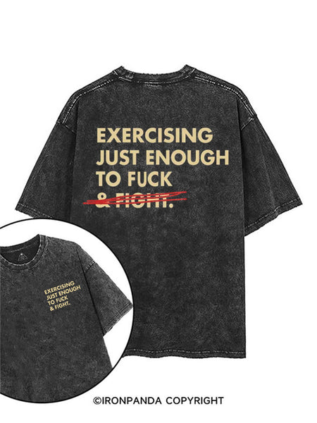 EXERCISING JUST ENOUGH TO FUCK & FIGHT printed Gym Shirt