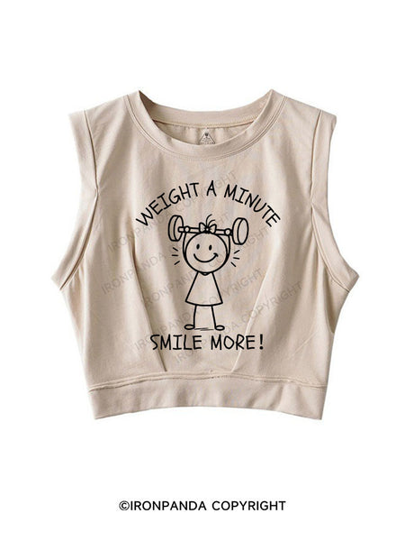 WEIGHT A MINUTE, SMILE MORE!SLEEVELESS CROP TOPS
