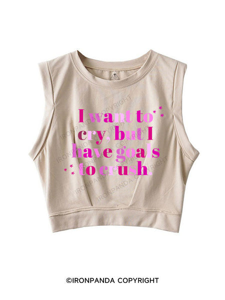 I WANT TO CRY, BUT I HAVE GOALS TO CRUSH SLEEVELESS CROP TOPS