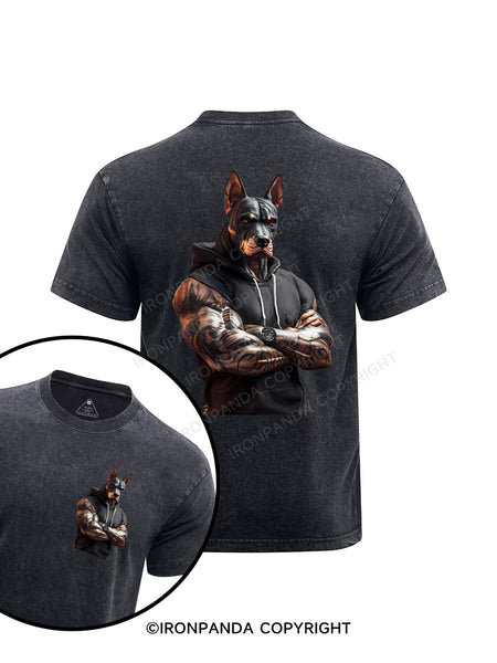 Muscular Doberman Pinscher printed Washed Gym Shirt
