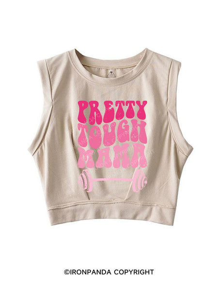 PRETTY TOUGH MAMA SLEEVELESS CROP TOPS