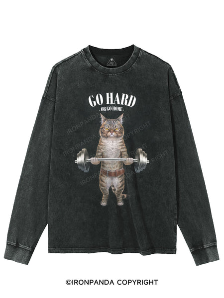 Tabby Cat Weightlifting WASHED LONG SLEEVE SHIRT