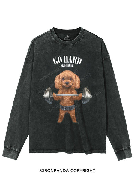 Poodle Dog Weightlifting WASHED LONG SLEEVE SHIRT