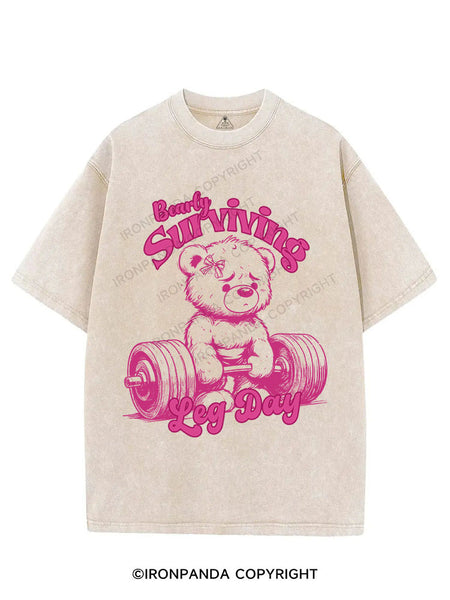 BEARLY SURVIVING LEG DAY VINTAGE GYM SHIRT