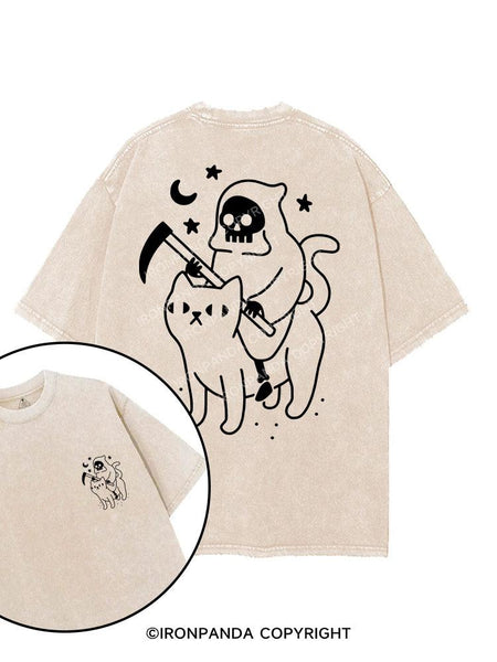 GRIM REAPER RIDING A CAT printed Gym Shirt