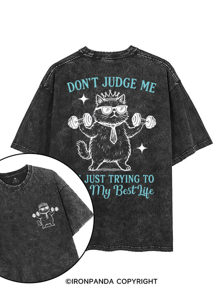 DON'T JUDGE ME I'M JUST TRYING TO LIVE MY BEST LIFE printed Gym Shirt