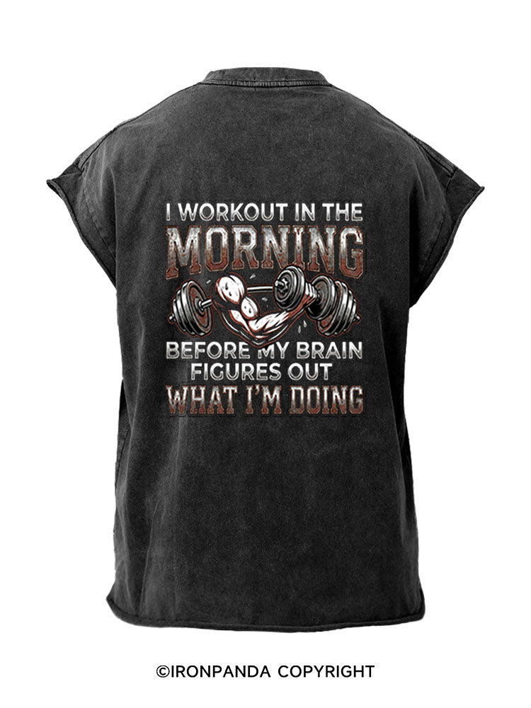 I Workout in the Morning Back Printed Cut Off Tank
