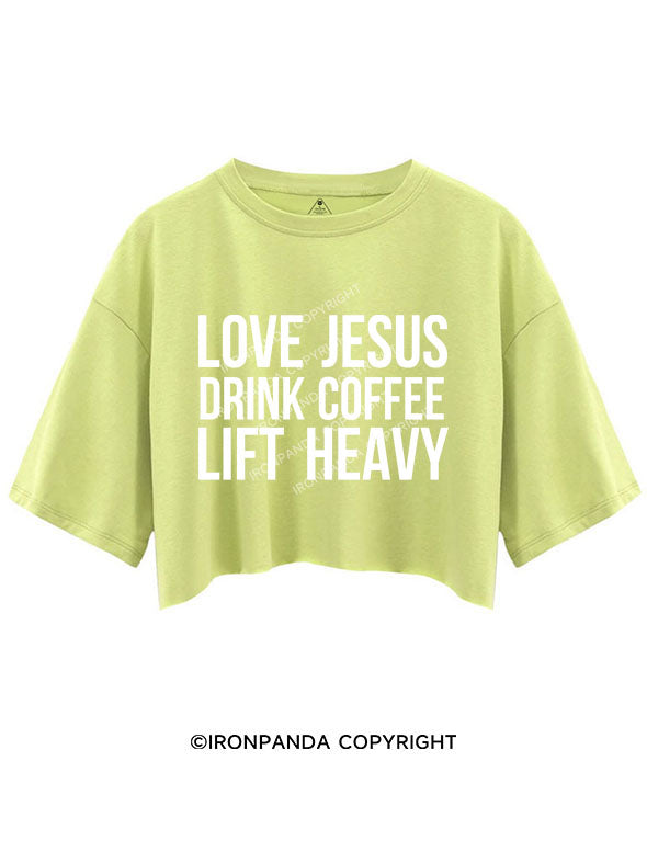 Love Jesus Drink Coffee Lift Heavy Crop Tops