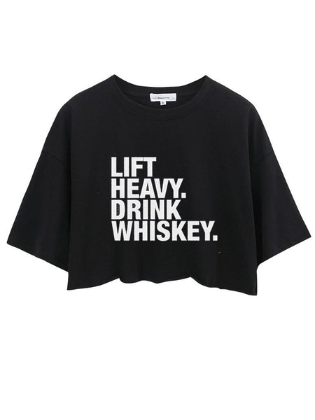 LIFT HEAVY DRINK WHISKEY CROP TOPS