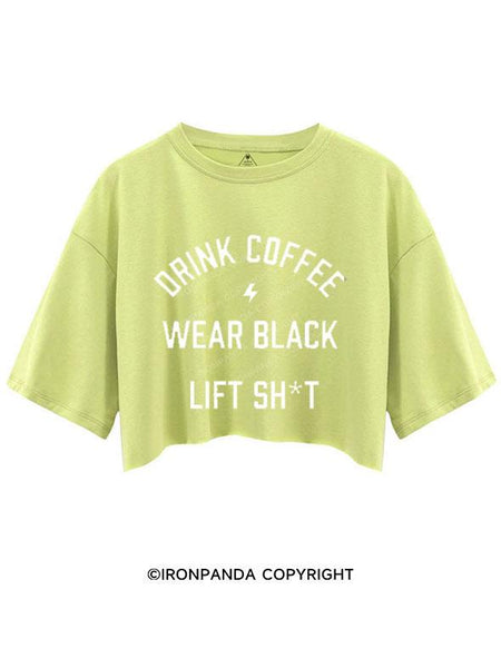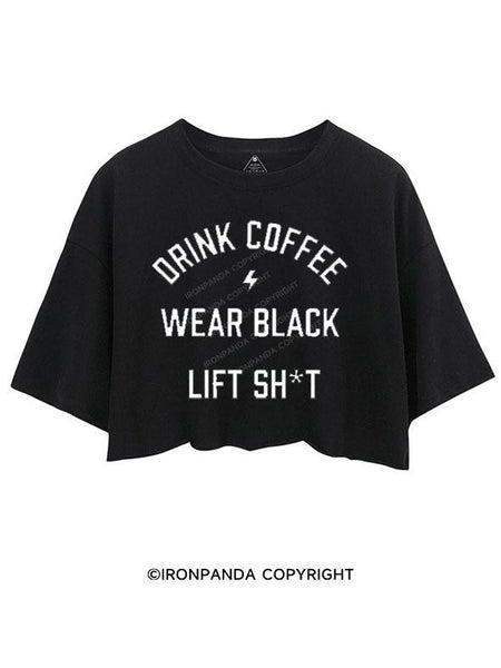 DRINK COFFEE WEAR BLACK CROP TOPS
