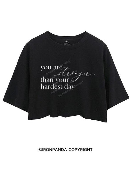 YOU ARE STRONGER THAN YOUR HARDEST DAY CROP TOPS