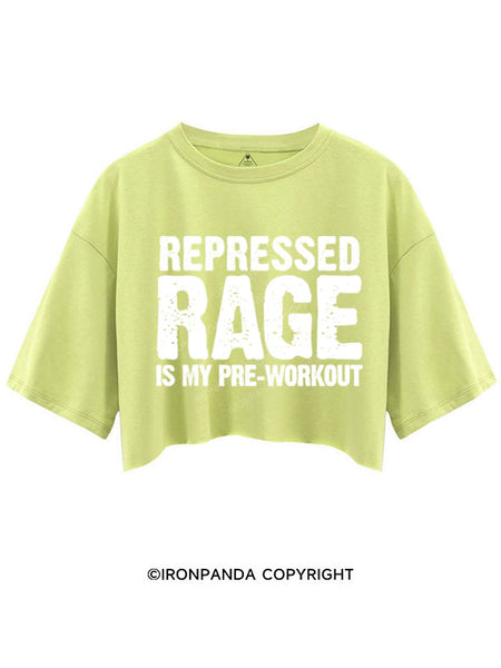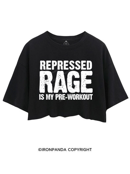 REPRESSED RAGE IS MY PRE-WORKOUT CROP TOPS