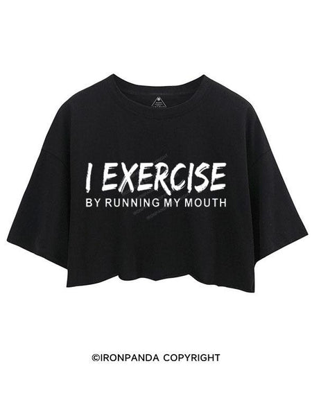 I EXERCISE BY RUNNING MY MOUTH CROP TOPS