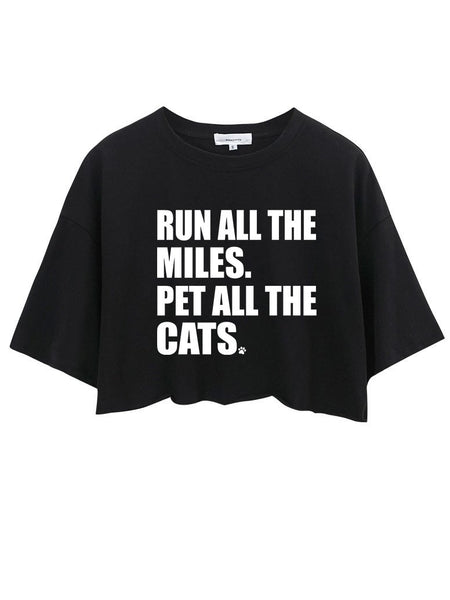 RUN ALL THE MILES PET ALL THE CATS CROP TOPS