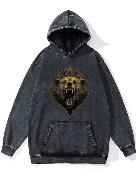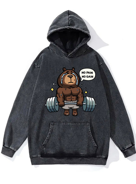 NO PAIN NO GAIN WEIGHTLIFTING BEAR Washed Gym Hoodie