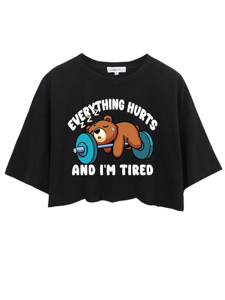 BEAR EVERYTHING HURTS AND I'M TIRED CROP TOPS