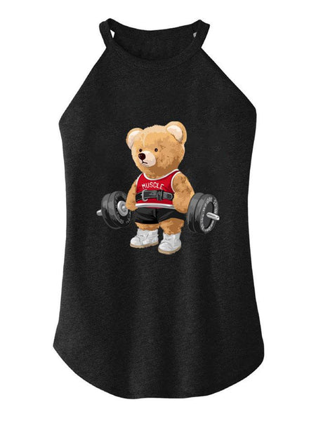 dumbbell weightlifting bear SCOOP BOTTOM COTTON TANK