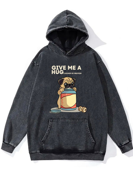 GIVE ME A HUGE SCOOP OF PROTEIN PUG DOG Washed Gym Hoodie