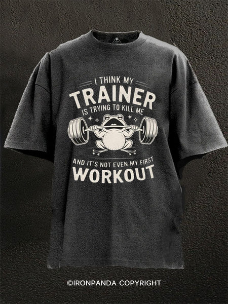 I Think My Trainer Is Trying To Kill Me Washed Gym Shirt