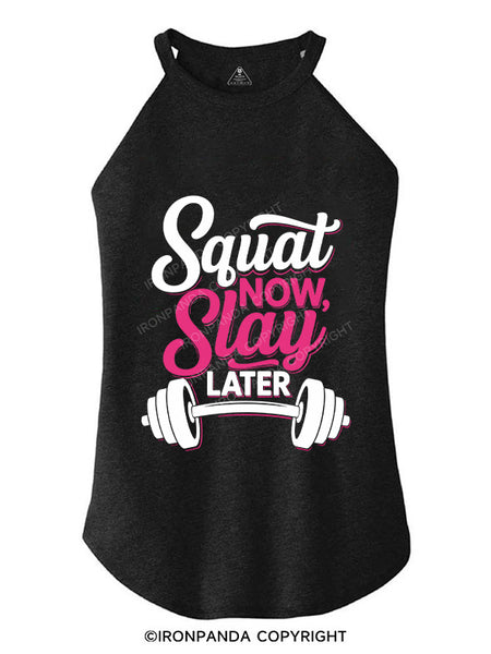 SQUAT NOW, SLAY LATER TRI ROCKER COTTON TANK