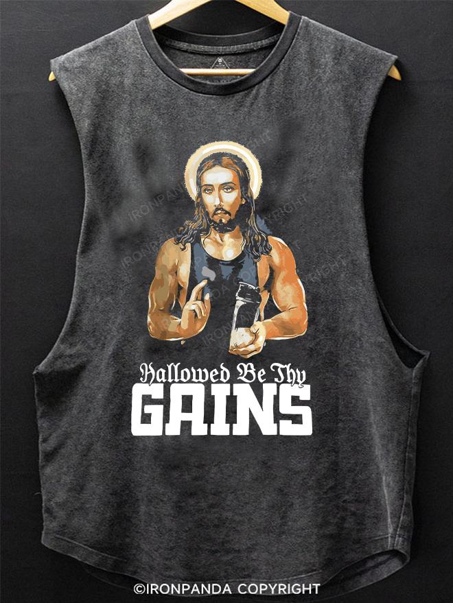 Hallowed Be Thy Gains Muscle Jesus SCOOP BOTTOM COTTON TANK