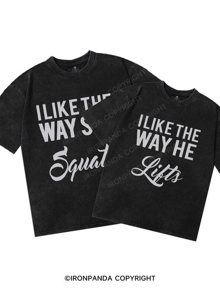 I Like The Way He Lifts Washed Matching Couples Gym Shirt