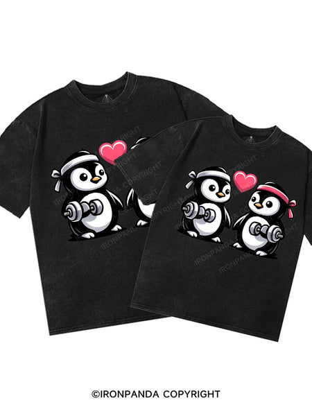 WADDLE AND LIFT TOGETHER Washed Matching Couples Gym Shirt