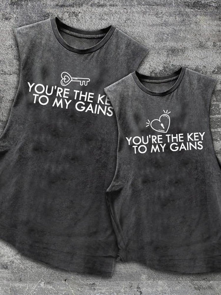 You're the Key Scoop Bottom Cotton Matching Gym Tank