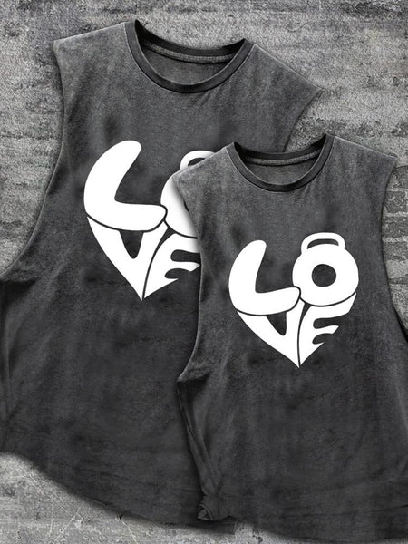 LOVE Scoop Bottom Cotton Matching Gym Tank