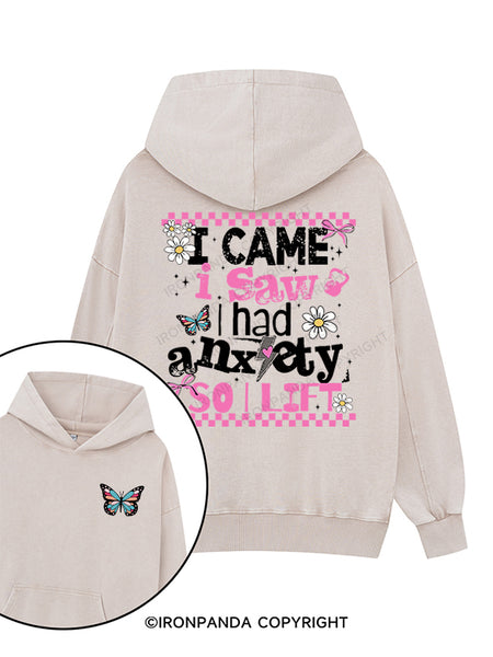 I CAME I SAW I HAD ANXIETY SO I LIFT Printed Washed Gym Hoodie
