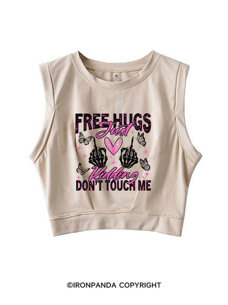 Free Hugs Just Kidding Don't Touch Me SLEEVELESS CROP TOPS