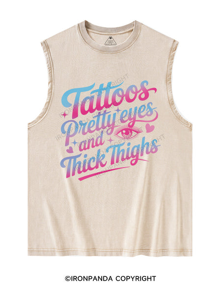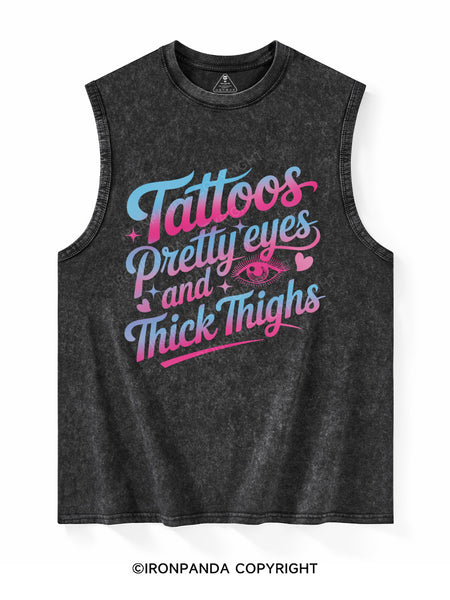 TATTOOS PRETTY EYES AND THICK THIGHS Washed Tank