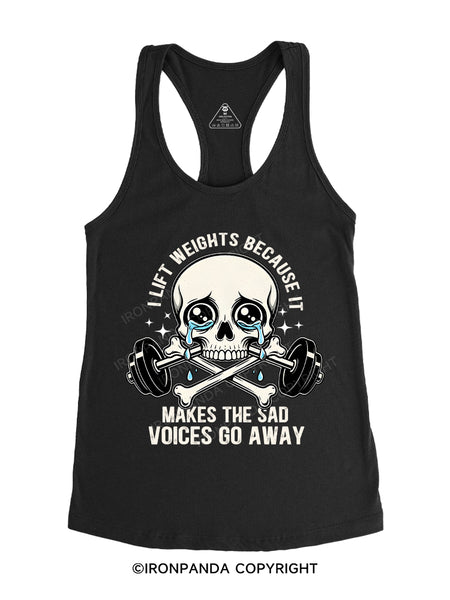 I lift weights because it makes the sad voices go away Gym Racerback Tank