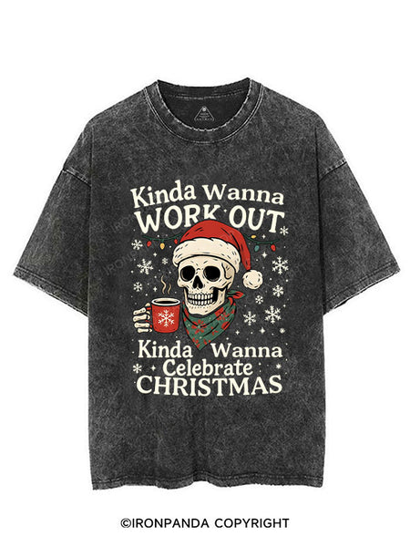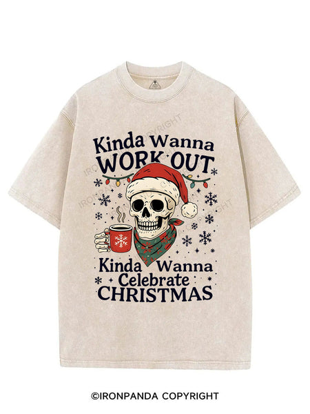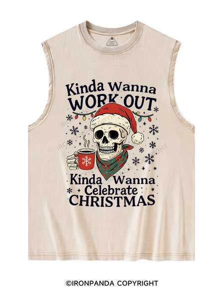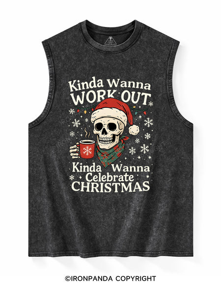 Kinda Wanna Work Out,Kinda Wanna Celebrate Christmas Washed Tank