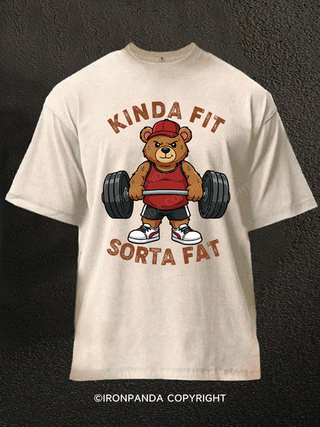 KINDA FIT SORTA FAT printed Washed Gym Shirt