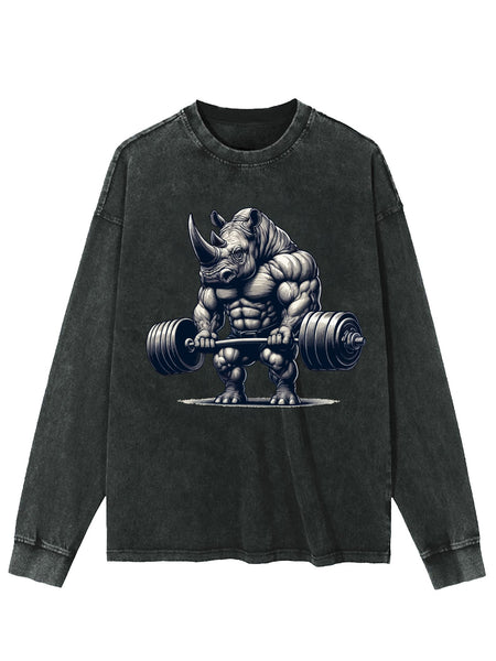 BARBELL WEIGHTLIFTING RHINO WASHED LONG SLEEVE SHIRT