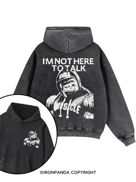I'M NOT HERE TO TALK Printed Washed Gym Hoodie