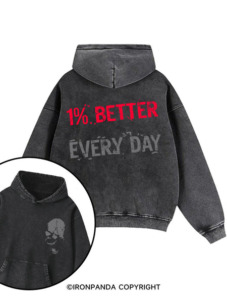 1% BETTER EVERY DAY Printed Washed Gym Hoodie