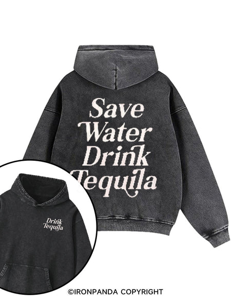 Save Water Drink Tequila Printed Washed Gym Hoodie