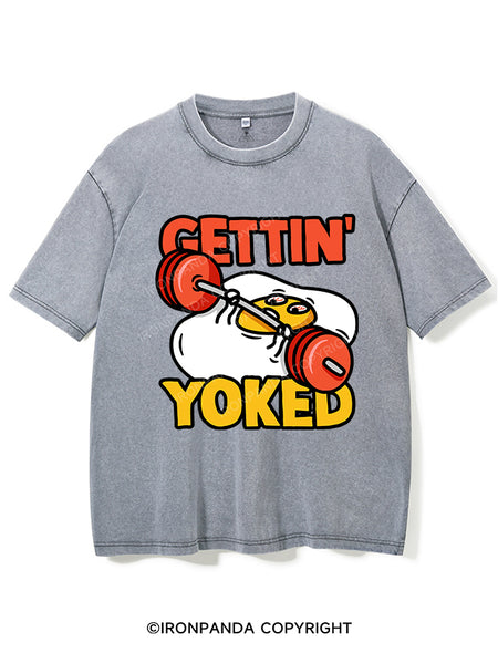 Getting Yoked Funny Benching Egg Vintage Gym Shirt