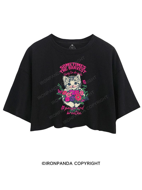 SOMETIMES THE BRAVEST THING TO DO IS TO PAUSE AND BREATHE CROP TOPS
