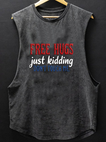 Free Hugs Just Kidding Dont Touch Me SCOOP BOTTOM COTTON TANK