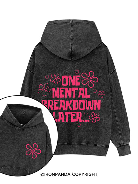 ONE MENTAL BREAKDOWN LATER Printed Washed Gym Hoodie