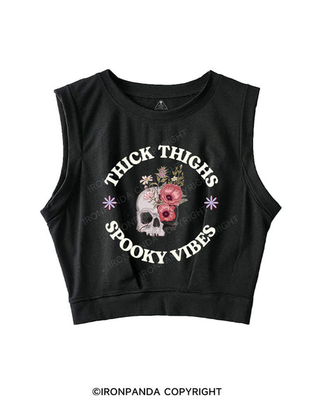 THICK THIGHS SPOOKY VIBES SLEEVELESS CROP TOPS