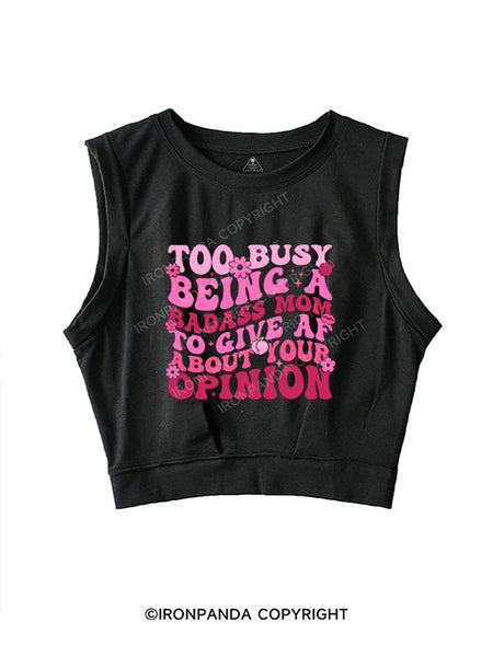 TOO BUSY BEING A BADASS MOM AF TO GIVE A ABOUT YOUR OPINION CROP TOPS