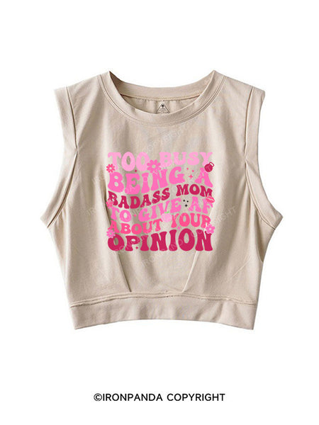 TOO BUSY BEING A BADASS MOM AF TO GIVE A ABOUT YOUR OPINION SLEEVELESS CROP TOPS