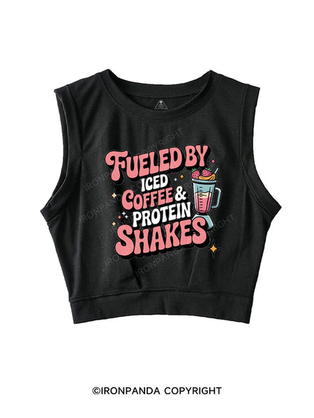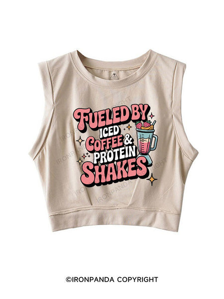 FUELED BY ICED COFFEE & PROTEIN SHAKES SLEEVELESS CROP TOPS
